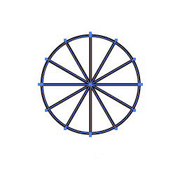 然后连续crld+d,多重复几次这个动作,直到旋转成一个圆形,将这几根线编组ctrl+g。新建一个圆形路径,使它们垂直居中对齐,选中它们,在路径查找器中点击"分割"按钮,然后你就可以分别给每一块上色了(最后不要忘了去掉描边哦)