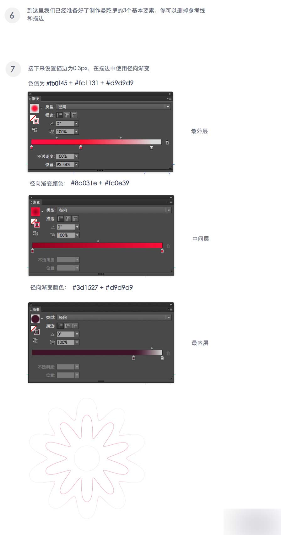 这篇教程教脚本之家的AI学习者们使用AI混合模式绘制绚烂唯美的花朵,教程绘制出来的花朵很唯美,制作的手法也很巧妙的使用了AI的混合模式,挺值得学习的。推荐过来和脚本之家的朋友们一起分享学习了,我们先来看看最终的效果图吧: