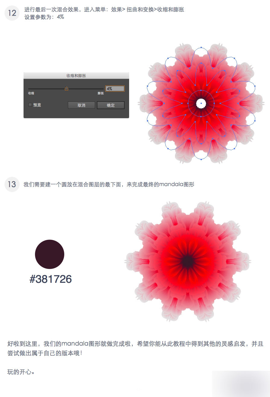 教程结束,以上就是AI混合模式绘制绚烂唯美的花朵方法介绍,大家看明白了吗?喜欢的朋友可以跟着教程一起来学习!