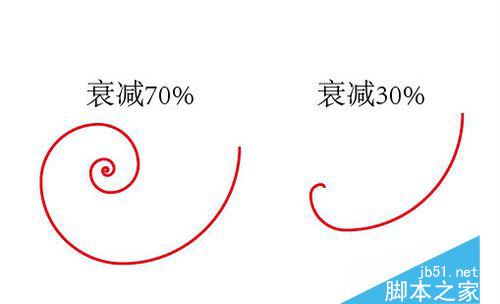 第三步:[螺旋线]对话框中的[衰减]选项是什么意思?