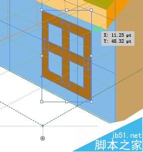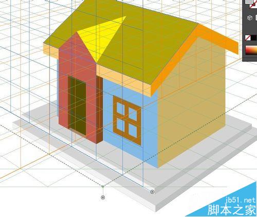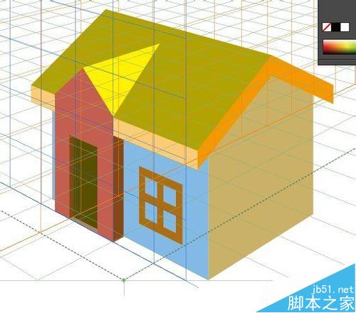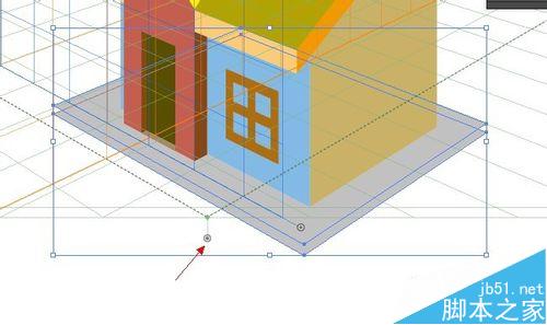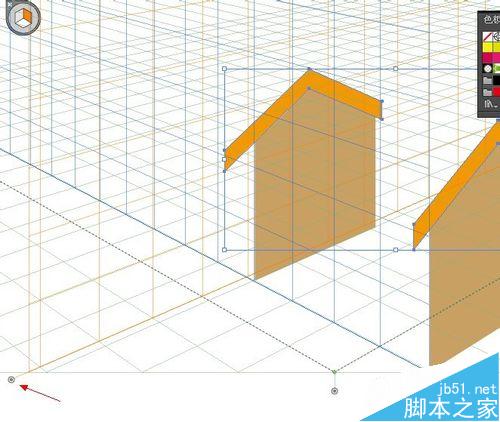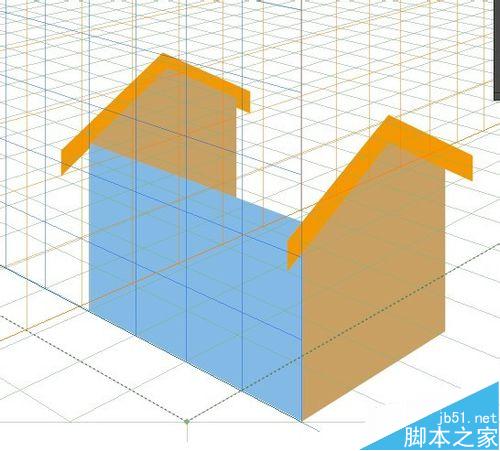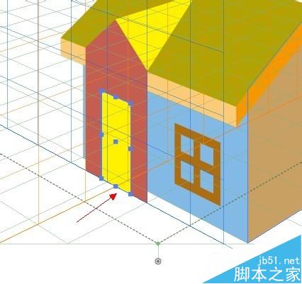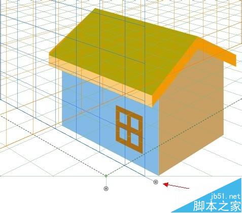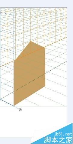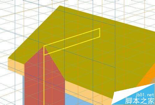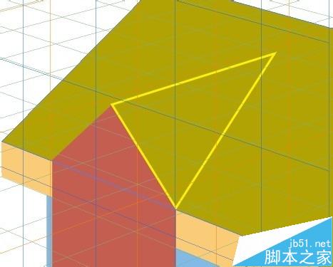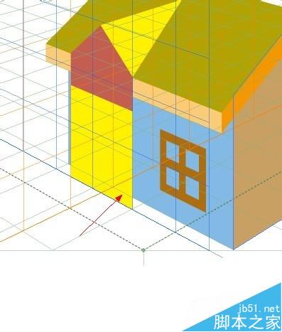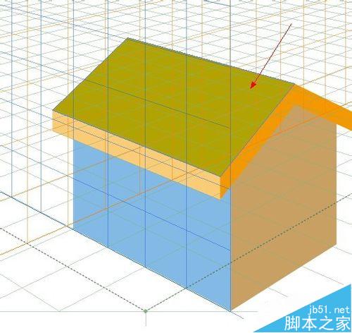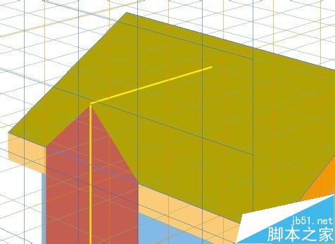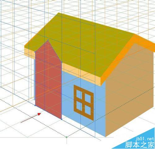 8、把红色网格移动到屋的第一个侧面偏右边一点的位置,(为什么要偏右边一点呢?因为将要画的屋顶不是和屋的侧面不是一个平面!) 然后拖入红色网格内;