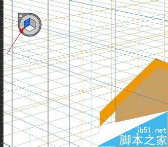 10、按SHIFT+V状态下,点击左上方立方体,把立方体,归位回蓝色网格平面,(也就是准备操作屋的正前方)
