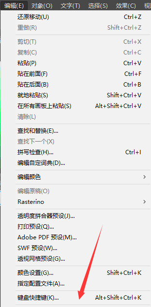 AI经常导图,大家会发现AI没有导图的快捷键,这个时候大家可以自定义一个快捷键,我个人喜欢的是CTRL+E,因为ID就是这个导的。可以在编辑菜单栏中的键盘快捷键命令上设置。
