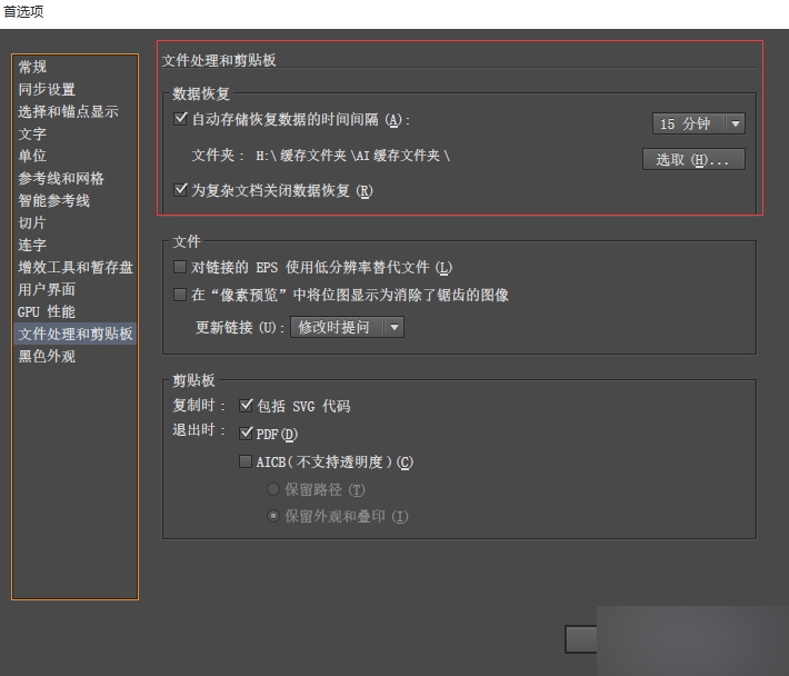 第二个数据恢复,用过AI的都知道,AI一直没有加数据恢复的功能,所以一卡就把文件丢失了。到了2015ADBOE把这个功能加上去了。这个功能个人感觉也不错。