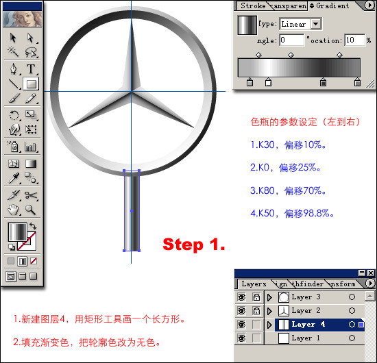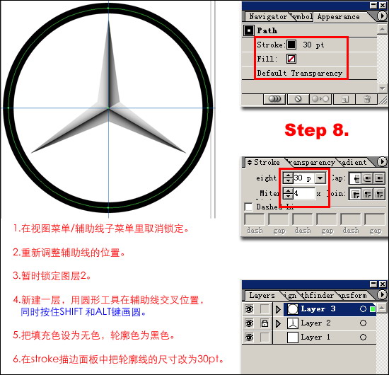 使用Illustrator工具绘制逼真的奔驰汽车标志