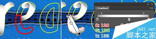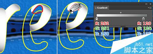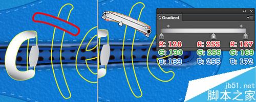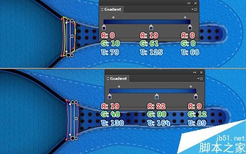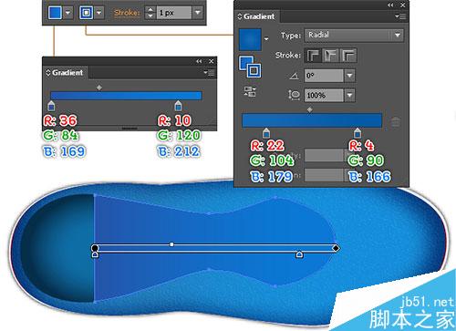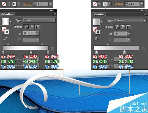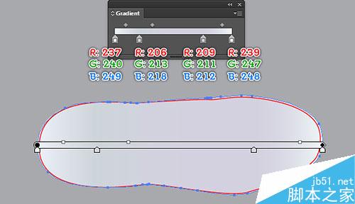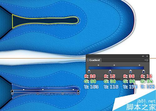 继续用钢笔工具(P),创建一个对象,并使用如下面的第三和第四图所示的线性渐变数值进行填充。