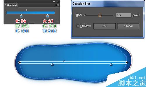 6. 使用钢笔工具,创建一个如下图所示的新对象,并用线性渐变填充它,然后去效果>模糊>高斯模糊。