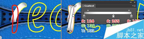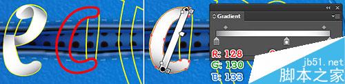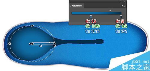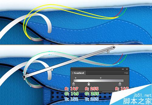 接下来,选择(白色)两个锚点和连接它们。最后,用线性渐变填充新的对象,如图5所示。