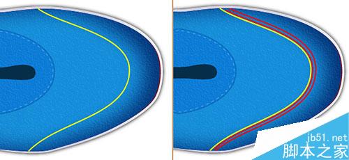 现在选择两条红色路径,吸管工具选择颜色,然后与第8步骤一样,渐变,虚线边框。最后效果如图所示。