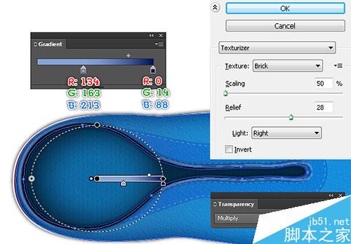 接下来,选择黄色的对象,填充渐变,之后 ,效果>纹理>纹理化,如图五所示,点击ok。