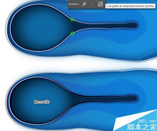 14. 按(Ctrl +Alt +3)显现在第10步里被隐藏的对象。之后为绿色线性 形状增加两个锚点(白色),选择两个新建的锚点,