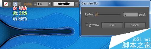 15. 选择钢笔工具,新建两条路径,如下图 所示 。当你的路径被画好,重新选择这些路径,无填充,1px的描边 (R=136, G=172, B=224),之后描边的宽度为2px、1px的高斯模糊效果。