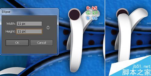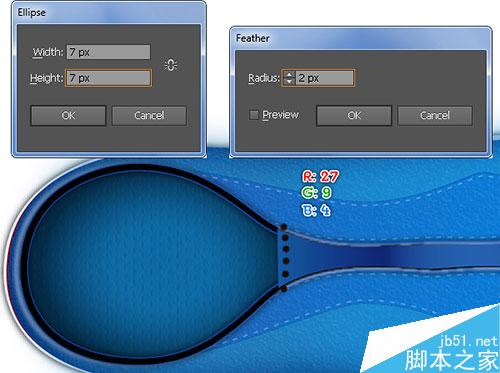 16. 使用椭圆工具,新建7px*7px的新对象,填充色 R=27, G=9, B=4, 之后2px的羽化效果。
