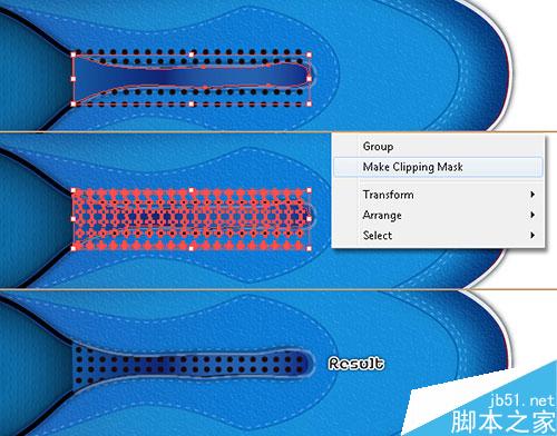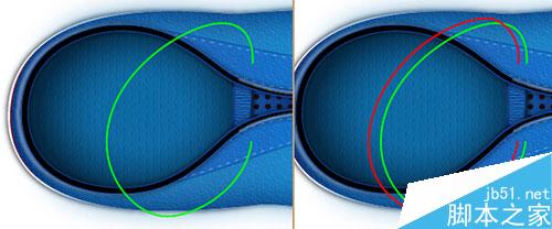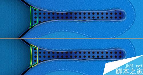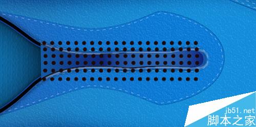 34. 复制更多的“hole”组,然后放置在如图红色圆圈所示的位置 。把这些“hole”放在鞋带后面。这时,效果就像下面的图片所示。