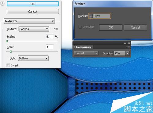 更换它的现有颜色与新的径向渐变。确保生成的形状仍处于选中状态,然后转到效果>纹理>纹理化。按照数据显示在第二图像,然后单击确定。最后,设置生成的形状的混合模式为正片叠底,并降低不透明度为20%。