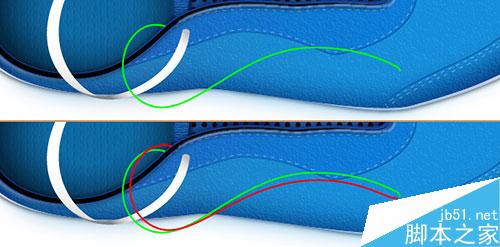 18. 用钢笔工具,创建两条弯曲路径,如下图所示。接下来,我们将在两个新创建的曲线路径段基础上创建鞋带。