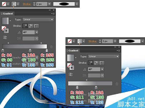 13. 为第12步创建的新对象做一个副本(按Ctrl + C,Ctrl + F键),替换描边颜色R=149, G=183, B=238 ,更改描边宽度:3px。