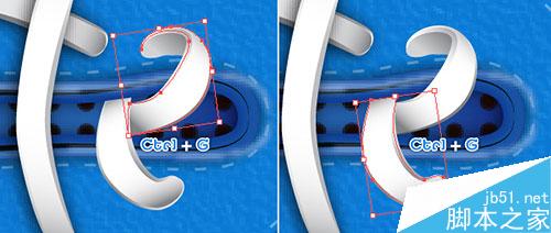 这步将创建两个新的对象。让我们选择右边对象,并将其删除。现在重新选择余下的对象,效果>模糊>高斯模糊。输入2px的半径,然后单击确定。对象被选中,按(Ctrl +左括号)两次,向后移。