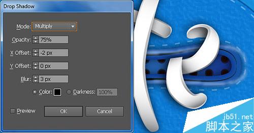 4. 选择黑色的对象,并使用线性渐变填充,如下图所示。保持选择的对象。去效果>风格化>投影。如图2所示,然后点击OK。