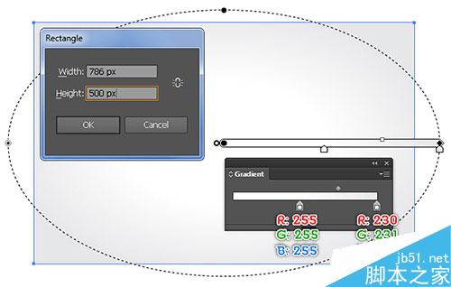 35. 最后制作背景。选择矩形工具,创建786*500px的长方形,渐变设置如下图所示。