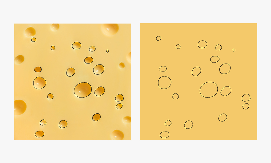 矢量图的好处就是彻底解决了受像素所限制的高清画质显示,但与此同时,矢量图却也表现得较为呆板。要平衡这对矛盾,我们需要的就是在写实性上下功夫。矢量图,毋庸置疑,一定要自己亲自作画。今天,我们就和大家一起来练习矢量图作画当中的写实技巧。我们的创作对象是一张奶酪背景图案。