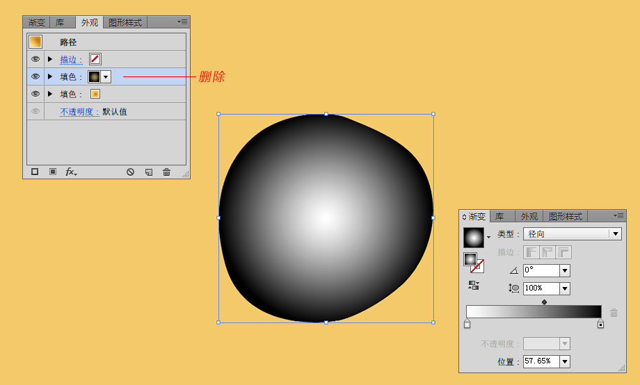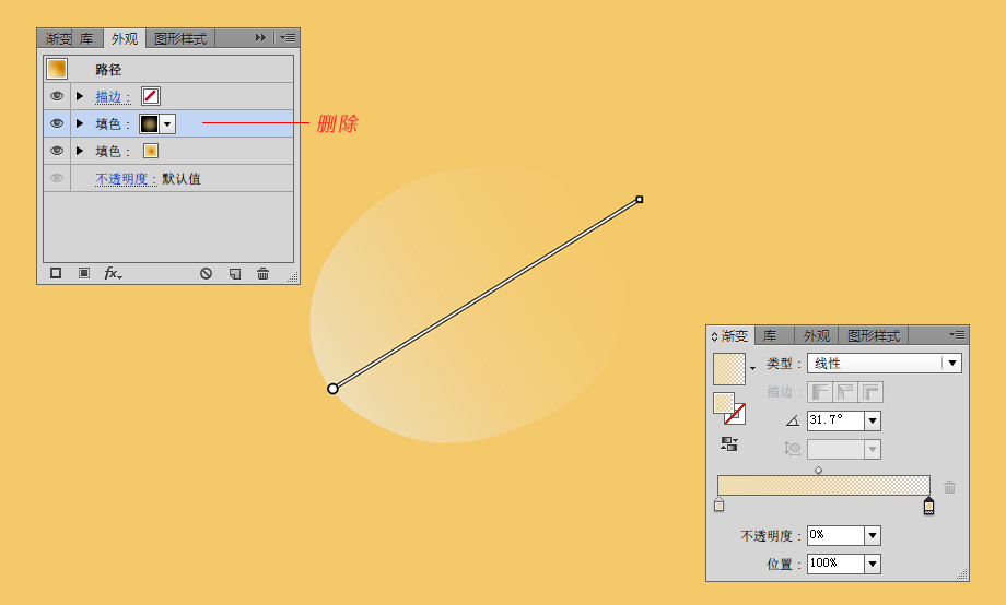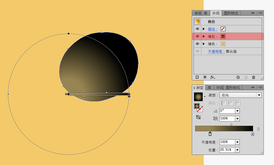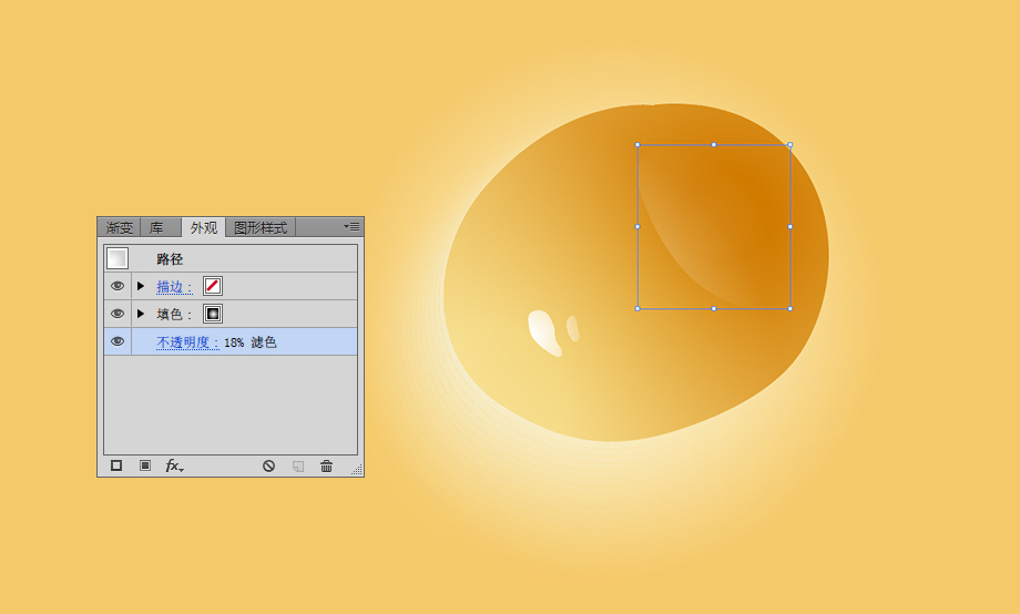 打开外观面板,为这个对象增加一个新的填充。新填充色是为了给这个对象增加浅黄色的渐变。