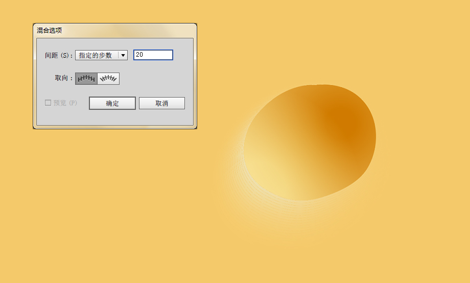 这时把这两个对象都选中,然后双击混合工具设置好要混合的参数,指定的步数20。混合的参数根据你所绘制对象而有所不同。大家可以通过不断尝试找出最佳效果。