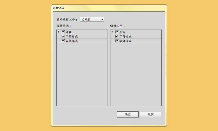 做好第一个气孔,其他的气孔都可以通过吸管工具来完成。当然,没有想象中那么简单。首先双击吸管工具,弹出吸管工具的设置选项。