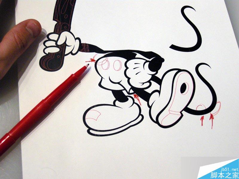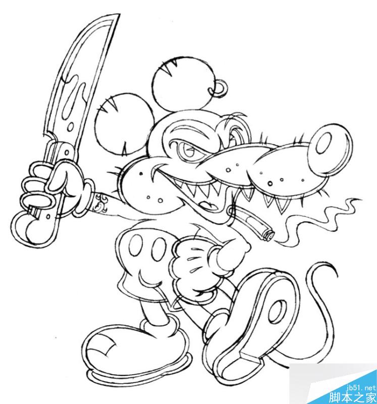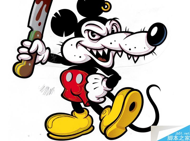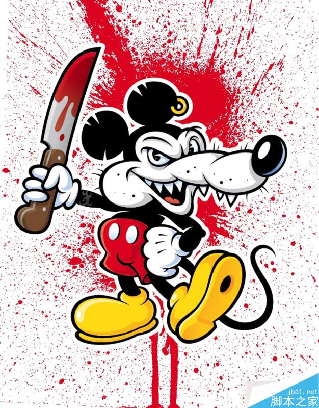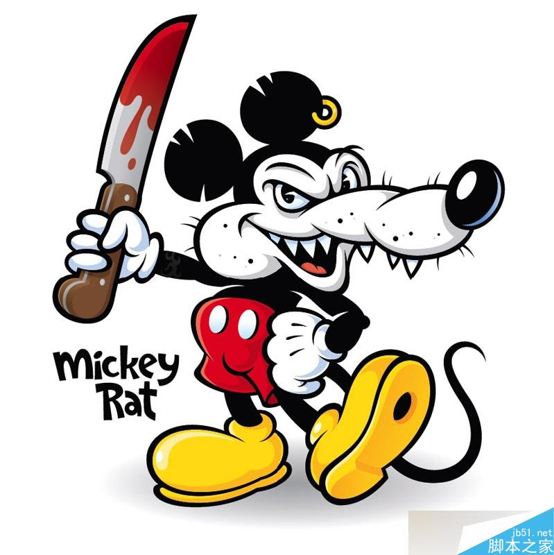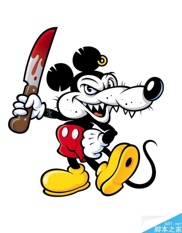 这篇教程是向脚本之家的朋友介绍AI绘制一个拿刀的邪恶米老鼠卡通形象方法,教程很不错,难度不是很大,推荐到脚本之家,喜欢的朋友一起来学习吧!