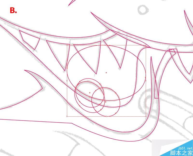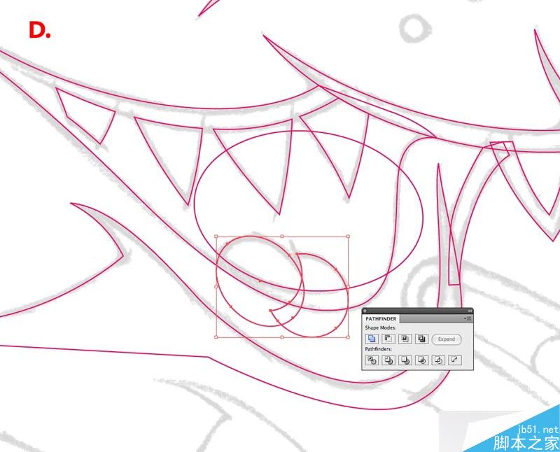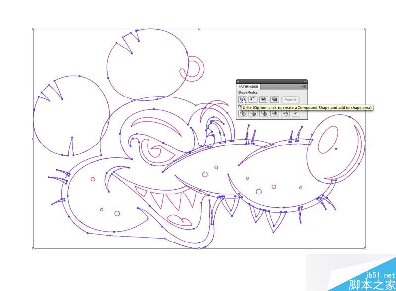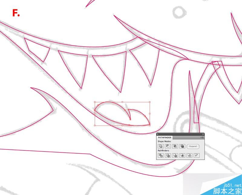 钢笔不是唯一的绘制工具,还可以用面。比如这个例子,这个人物的舌头就是用椭圆和路径查找器来完成的。(具体过程看图就明白了,就不罗嗦了。)