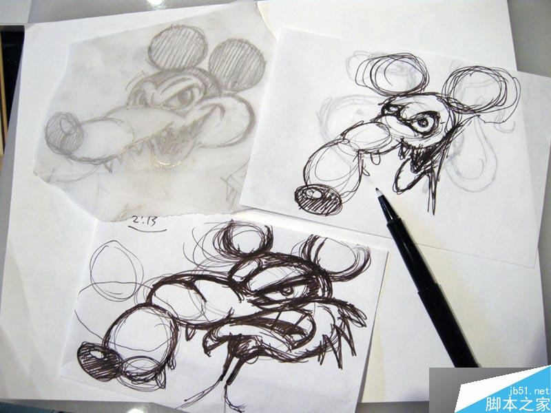 虽然现在电脑数码横飞,但是创意最好的表达方式还是一样的。也就是,在你准备一头扎进电脑之前,创意应该已经手绘出来了,成型了。如果你创作一个形象的,不如米老鼠的衍生物,好的参考是必须的。但是我的这个形象是有我自己的想法及性格在里面的,在我的创作中,普遍的可视的"属性"是不可或缺的。