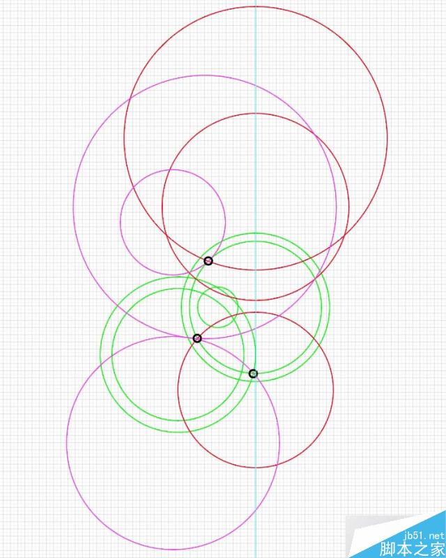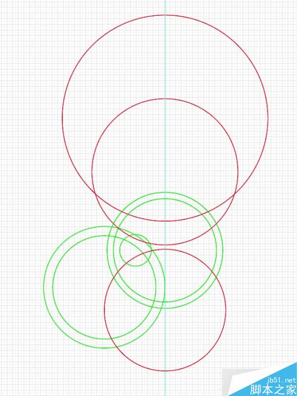 将复制的圆圈对第一次画的圆居中对称对齐(如图所示)