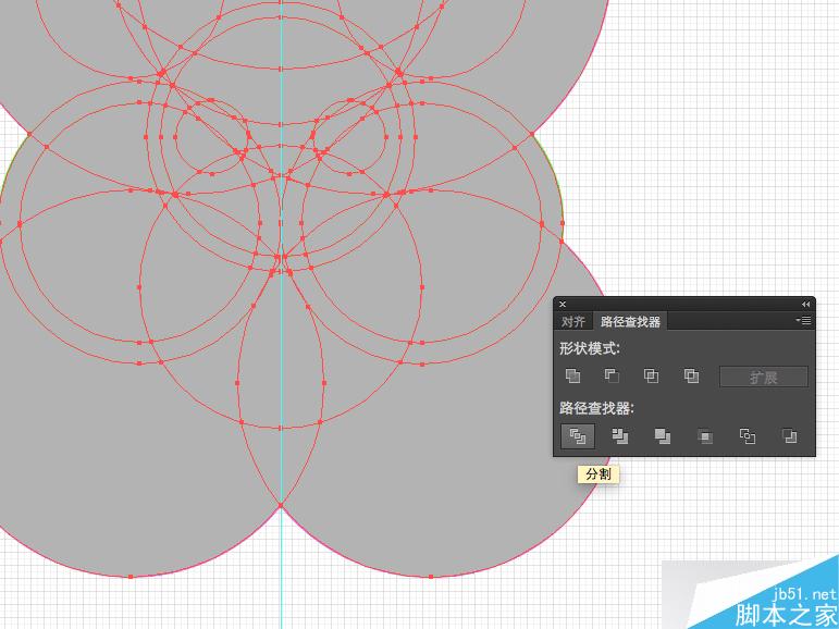 全选,COMMAND+C,锁定图层,并创建一个新图层,SHIFT+COMMAND+V到新图层.全选,去掉描边填充色,使用路径查找器点击分割.