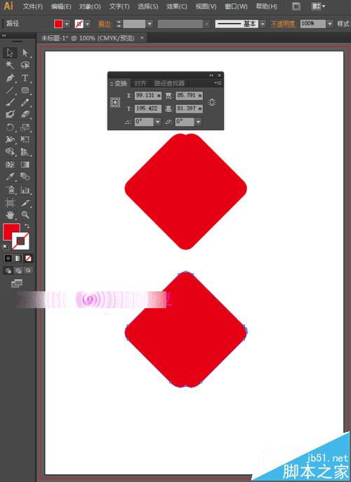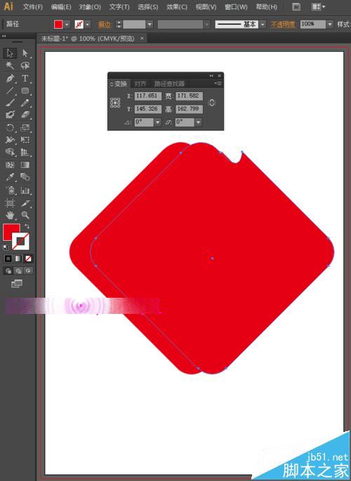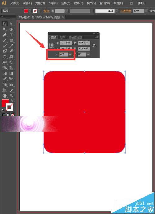 3、执行菜单栏中的窗口—路径查找器,我们选择变换,将角度设置为45度,如下图所示。