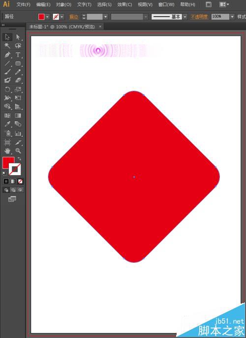 2、选择工具箱中的圆角矩形工具,将填充设置为红色,描边设置为无,鼠标点击拖动不要放,我们按上下方向键控制圆角的弧度,弧度控制好后,按住shift键可以保证画出一个正的图形。(注意:在此过程中,鼠标都是点击不放的。)
