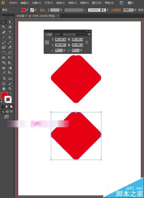 8、选中工具箱中的选择工具,选中这两个图形,按快捷键Ctrl+C,Ctrl+V,然后在变换面板中设置旋转角度为90度,按enter键确定,得到如下图所示的图形。