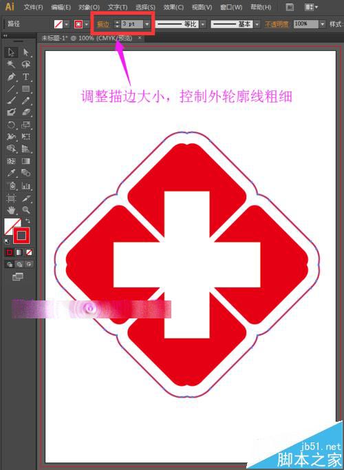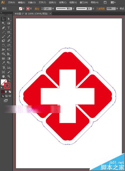 11、医院标志的外表,还有一个红边,现在我们来制作这个红边。还是选择工具箱中的选择工具,选中整体,按快捷键Ctrl+C,Ctrl+F,然后在路径查找器中选择联集,可以得到如下图所示的图形。