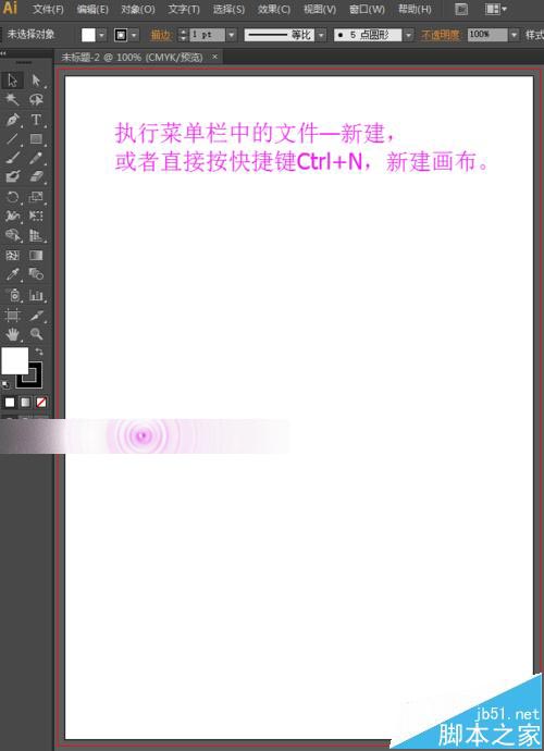 1、打开ai的软件,执行菜单栏中的文件—新建,或者直接使用快捷键Ctrl+N,新建一个画布。小编在这里新建的是一张A4纸张大小的画布。