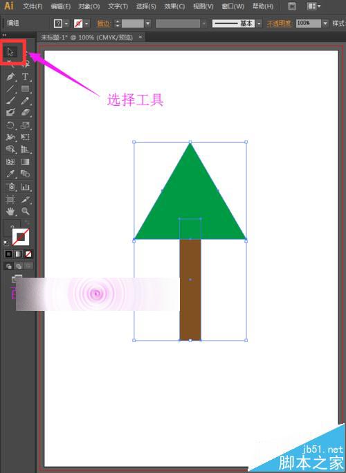 1、我们还是以这棵树为例,给大家讲解下第二种翻转图形的方法。选择工具箱中的选择工具,选中这棵树。