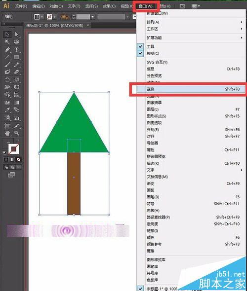 2、执行菜单栏中的窗口—变换,或者直接使用按快捷键shift+F8,如下图所示。