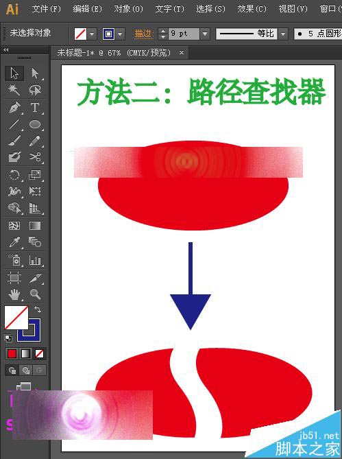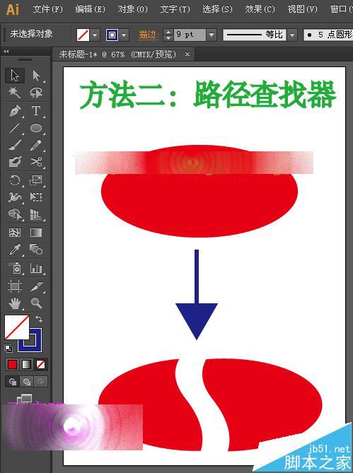 2、在使用路径查找器中的分割时,要先选中分割的图形和分割的线,也就是选中整体。
