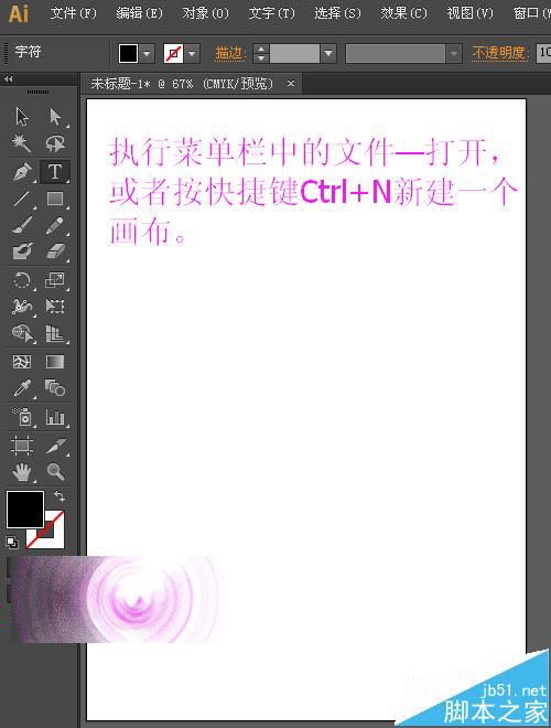 1、打开ai的软件,执行菜单栏中的文件—新建,或者直接按快捷键Ctrl+N新建一个画布。在这里展示的是A4大小的画布,如下图所示。