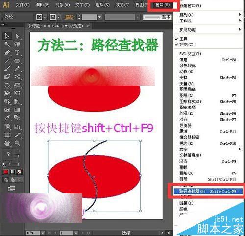 4、选中整体后,执行菜单栏中的窗口—路径查找器,或者直接按快捷键shift+Ctrl+F9,打开路径查找器面板,如下图所示。