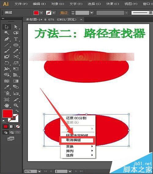 6、分割之后,我们单击鼠标右键,可以看到一个取消编组,点击取消编组,如下图所示。