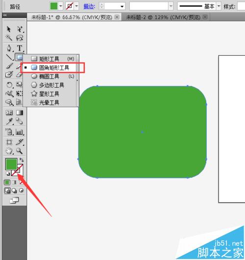 2、然后我们在工具栏中找到【矩形工具】——【圆角矩形工具】我们绘制的时候也如果觉得角度不够圆,我们可以按住键盘上的【上】键,效果我们见下图所示;
