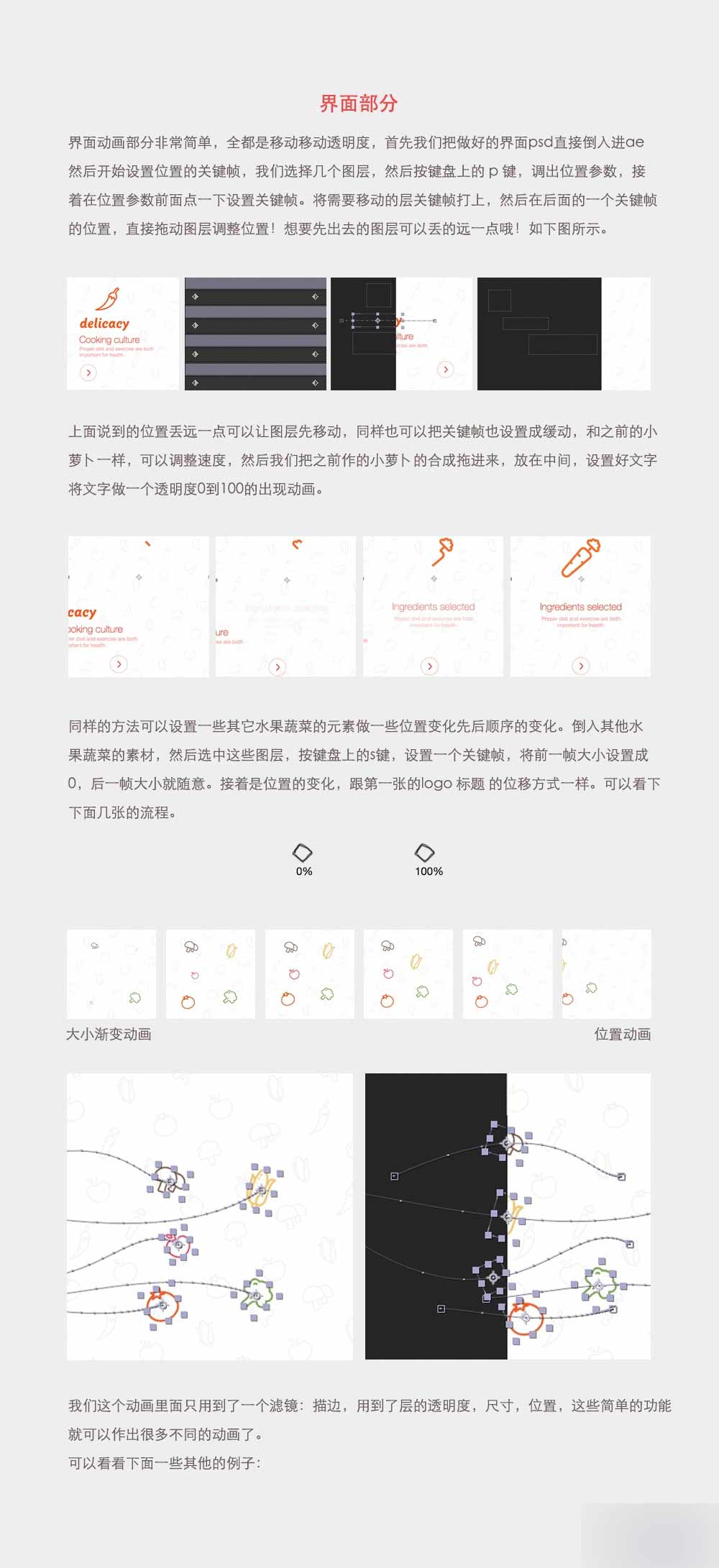 这篇教程教脚本之家的AI学习者们使用AI和AE设计动效胡萝卜界面,教程非常完善的介绍了引导页的设计流程和动效制作过程,实操性非常强。所以推荐到脚本之家,喜欢的朋友快快来学习吧,下面我们先来看看最终的效果图吧: