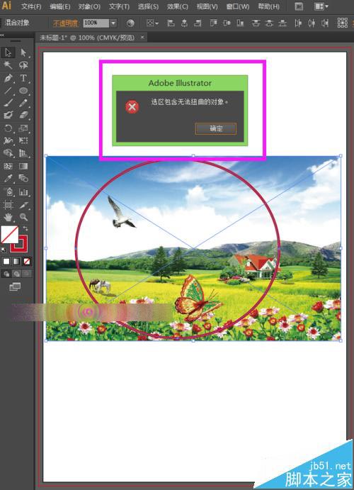 5、这时候,我们就发现了选区包含无法扭曲的对象,无法建立封套扭曲。