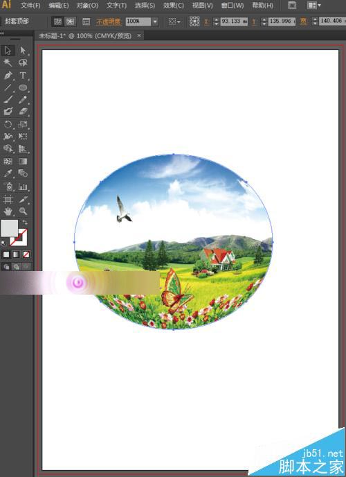 8、嵌入图片后,选中工具箱中的选择工具,选中整体,然后执行菜单栏中的对象—封套扭曲—从顶层对象建立,或者直接按快捷键Alt+Ctrl+C,封套扭曲就可以使用了,如下图所示。