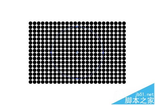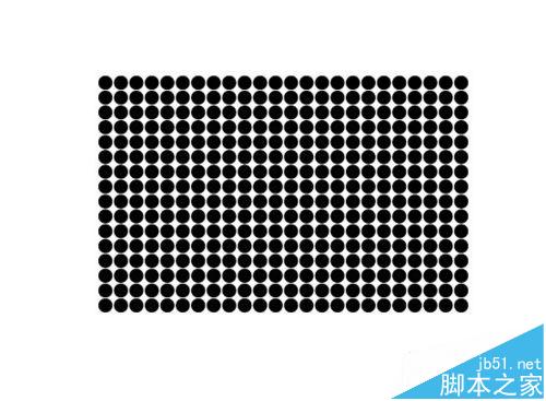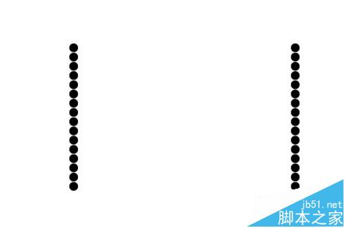 1、首先新建一个文档,用椭圆工具画一个圆点,然后复制一份,间隔可以随意,然后混合成一条圆点,复制一份,放到右边,两条圆点都扩展一下,然后再次混合成一个矩形的圆点集合