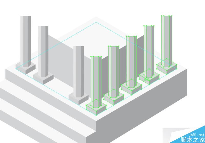 继续创建等距图标矢量的屋顶.复制上面的基础和两份,如下图所示.
